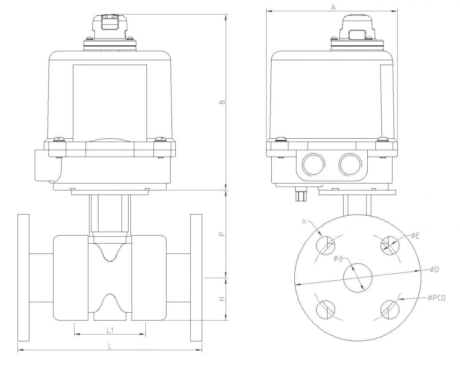 | Model | Size | Actuator | ⌀d | ⌀PCD | ⌀D | L | L1 | H2 | n | ⌀E | P | A | B |