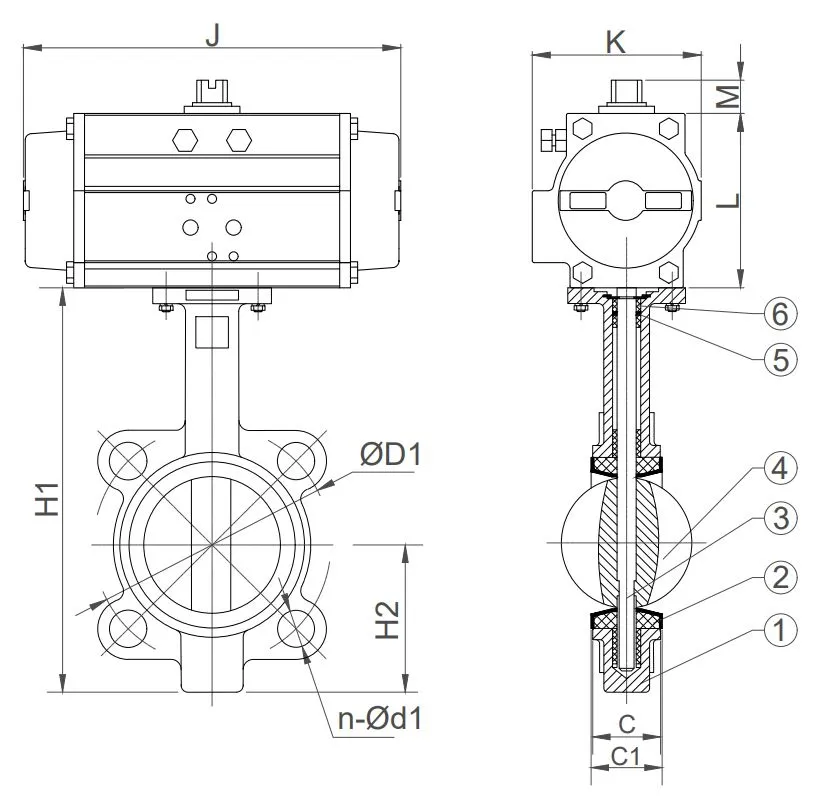 Model | DN | Actuator | C | C1 | H1 | H2 | J | K | L | M | AS2129 Table D | AS2129 Table E | ANSI150 | |||