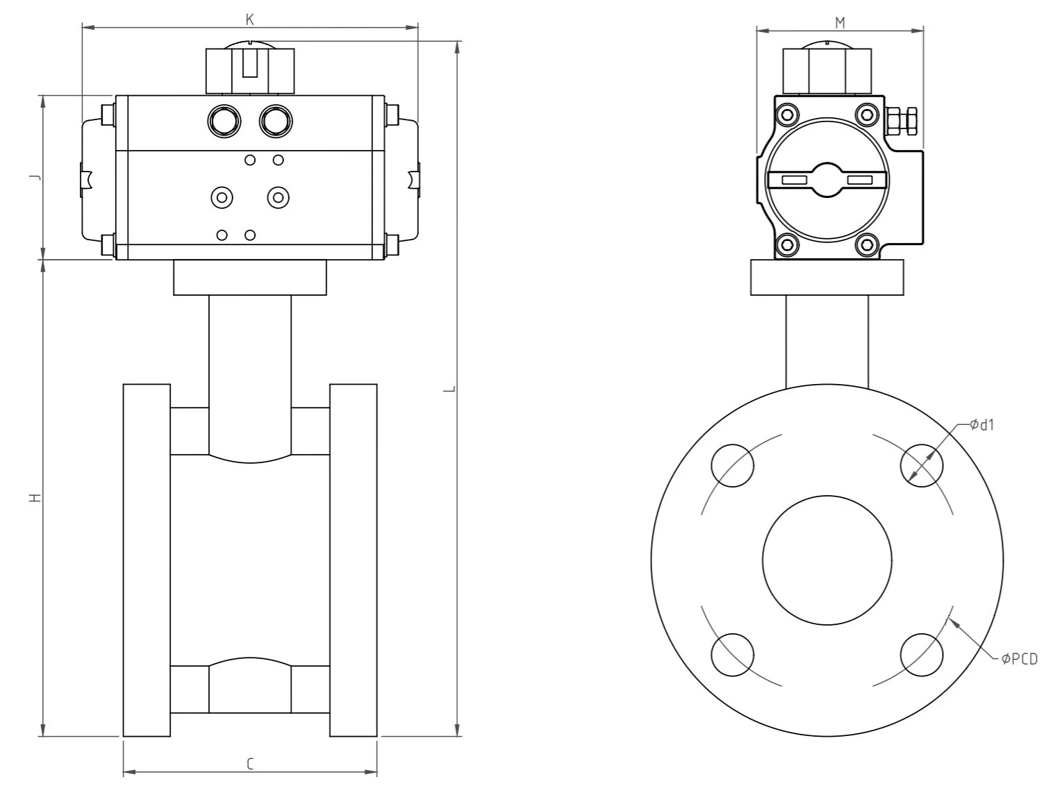 DN Actuator C H ⌀PCD n ⌀d1 J K L M