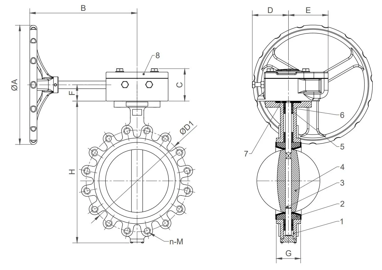 Model | Size (DN) | Gearbox | ØA | B | C | D | E | F | G | H | L | AS2129 Table E | |