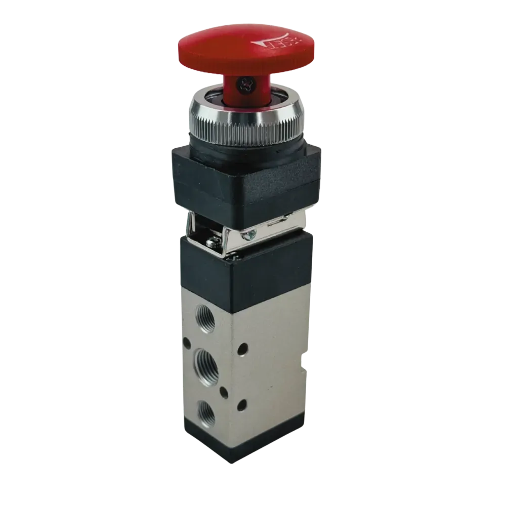 The PBL52 series are a five way two position palm button latching valve, also known as an emergency stop valve. Once pressed it can only be reset by twisting the button in the direction of the arrow. Simple to use, install and maintain.