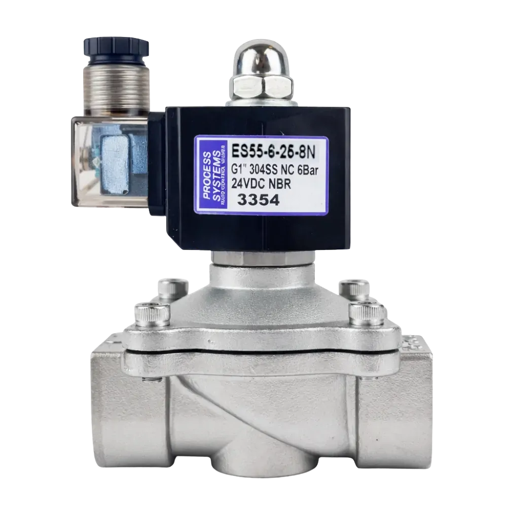 A high flow normally closed (power to open) valve with a 304 Stainless Steel forged body and stainless steel operator. Suitable for low head and zero head applications with a coupled diaphragm and standard with NBR seat and seals. Liquids to 20 centistoke viscosity. Standard coil is weatherproof to IP65 and has LED illuminated plug. Typical Applications include tank drain, vacuum and low pressure general industry applications. Threads conform to ISO 7.1 Sealing Threads.