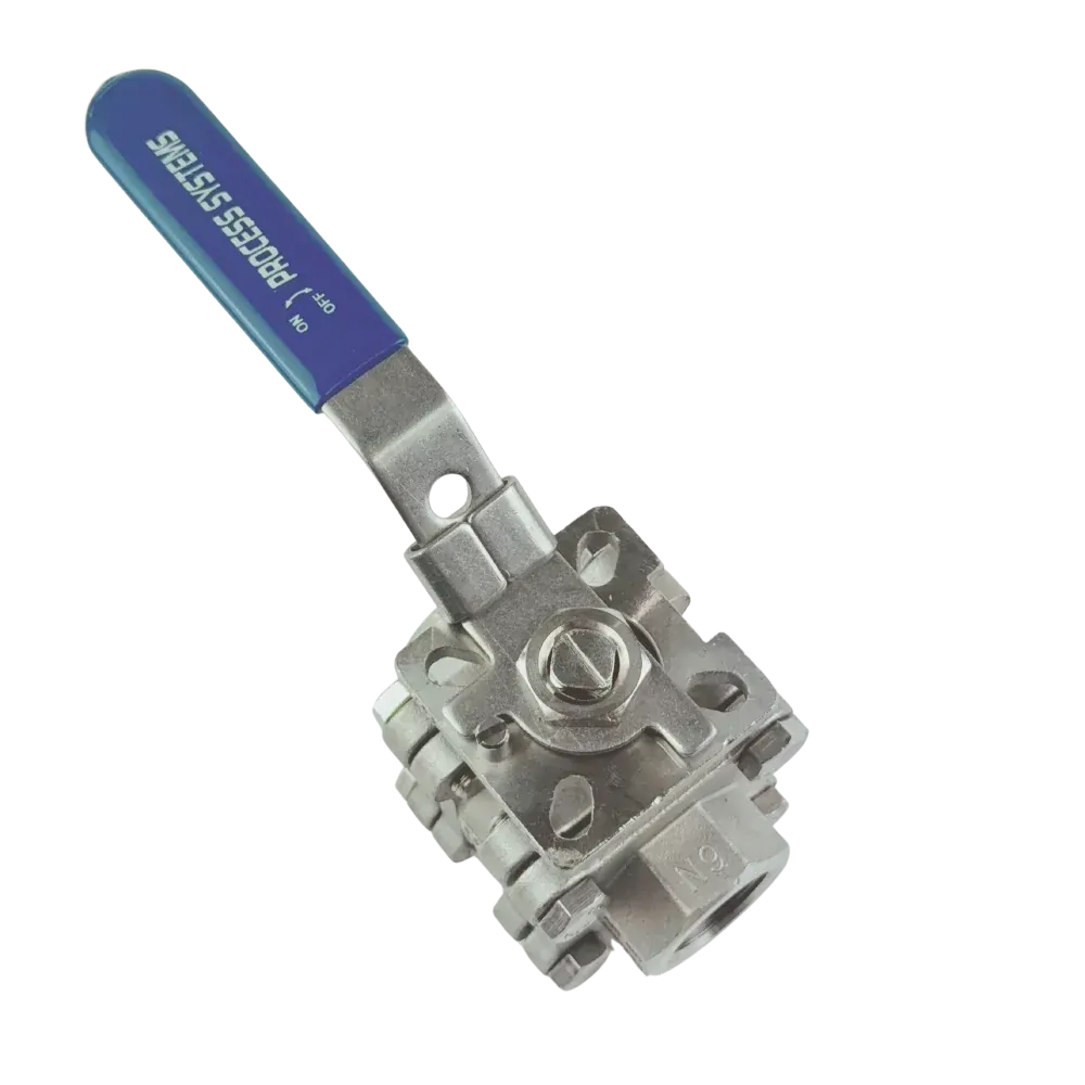 2 way 3 piece full bore investment cast 316 stainless steel ball valve with lockable lever and solid ball. ISO5211 mounting pad, length to DIN 3202-M3. Fire Safe approved certificate number 249036. Choose between BSP or NPT threaded connections.